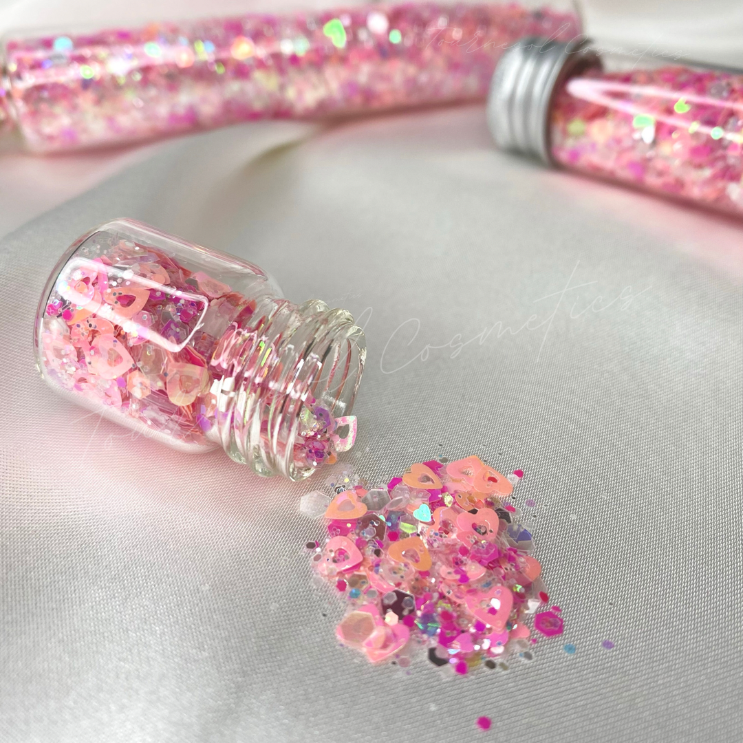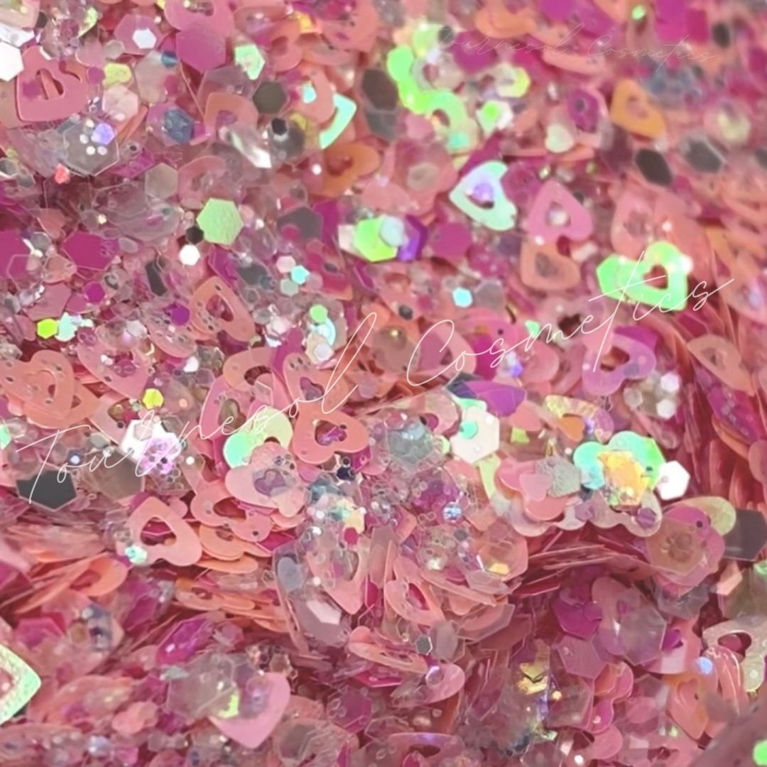 Iridescent Pink to Green/ Blue Heart shaped and Chunky mix shaped glitter