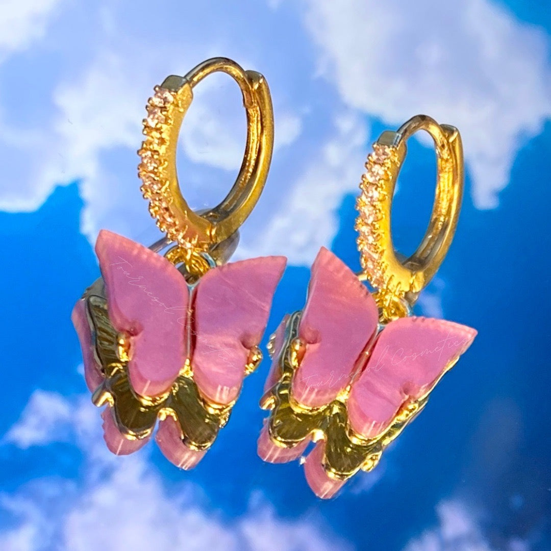 Rhinestone butterfly huggies perfect to glam up your look while adding a pop of color !
