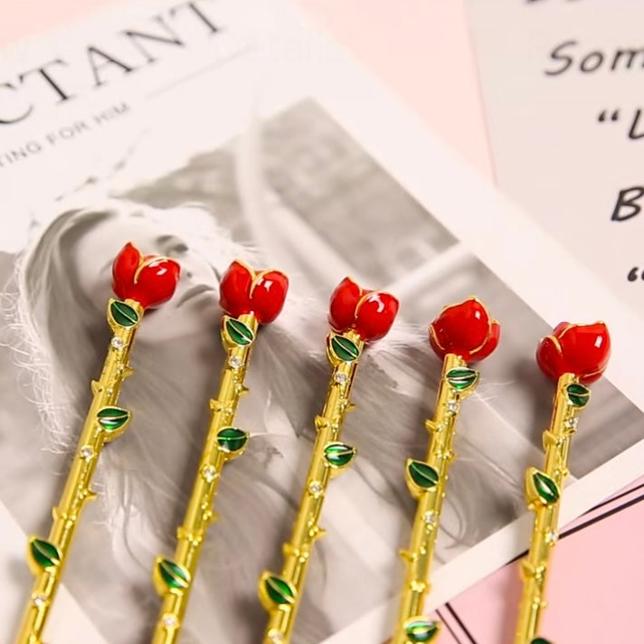 Rose detailing at the handle of all brushes with rhinestones throughout !